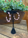 Gold Beaded With Pink Crystal 2” Hoop Earrings